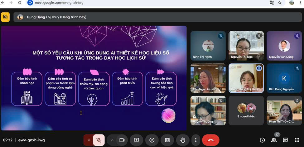 Buổi seminar của Khoa Lịch sử thực sự là một buổi chia sẻ bổ ích về cách khai thác các công cụ AI để thiết kế học liệu số tương tác trong dạy học Lịch sử.